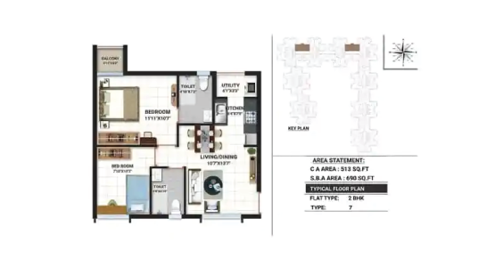Bren Northern Lights is a thoughtfully designed community of well-planned apartments spanning over 6+ acres. The project features holistic living with 2 BHK apartments across 9 towers, each with 9 floors, totaling 716 apartments.